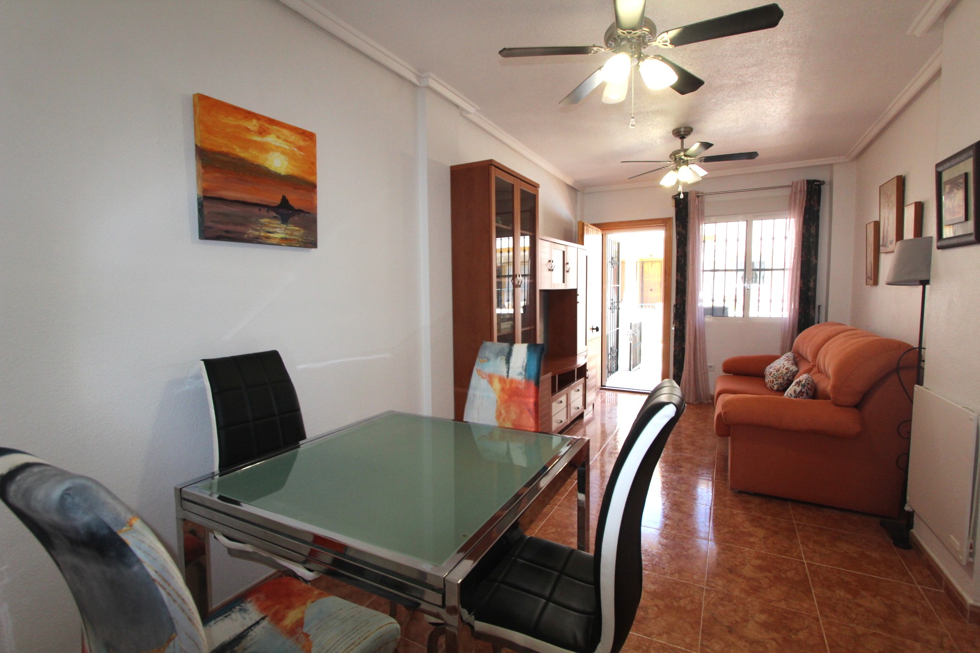 As you approach the community you have parking, a landscaped communal garden and the communal pool. As you enter the property you have a nice sized garden and terrace leading into the generous sized lounge diner. This opens into the modern kitchen. From the lounge you enter the hall way where you have a family shower room, the guest bedroom and the master bedroom. The property has recently had new AC installed and mosquito blinds added to the windows and the front door. All rooms have ceiling fans.